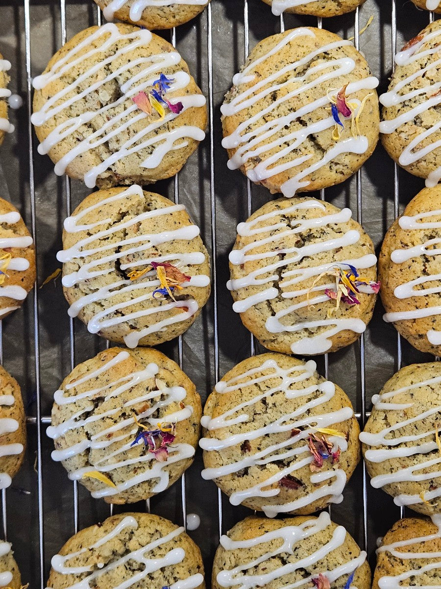 Thé Earl Grey, noix de pécan, amandes, glaçage citronné